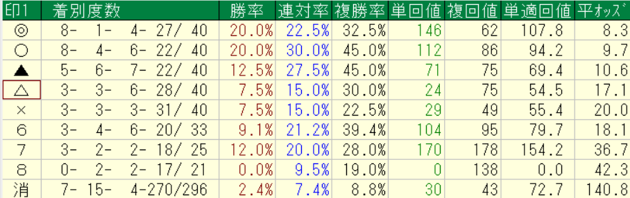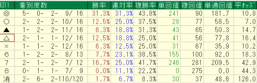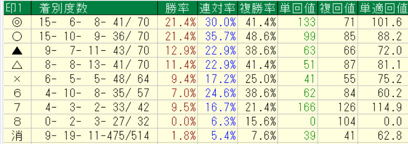 全レースでも、がんばっていますね。本命と対抗の回収率が良くて、消しの回収率が極端に低いというのは維持されています。