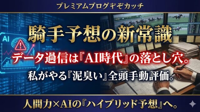 横けん競馬予想AIとは 「騎手予想」についての新しい試み「騎手名」だけで予想するのは思考停止だ。TARGETで「騎手×〇〇」を掛け合わせ、過剰人気を避けて穴を獲る新しい分析手法「騎手予想」についての新しい試み 今日は、「騎手予想」についての新しい試みについての話をします。前回の記事で、騎手という予想ファクターは、今のところ私の中では優先度が低い位置にある、と書きました。理由は、重視している人が多すぎるし、騎手については詳しく知っている人が多すぎる... 2026.01.26 横けん競馬予想AIとは